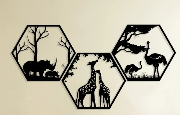 Du erhältst 5 verschiedene Wall Arts im sechseckigen Format um dass du diese an deine Wandbefestigen kannst.